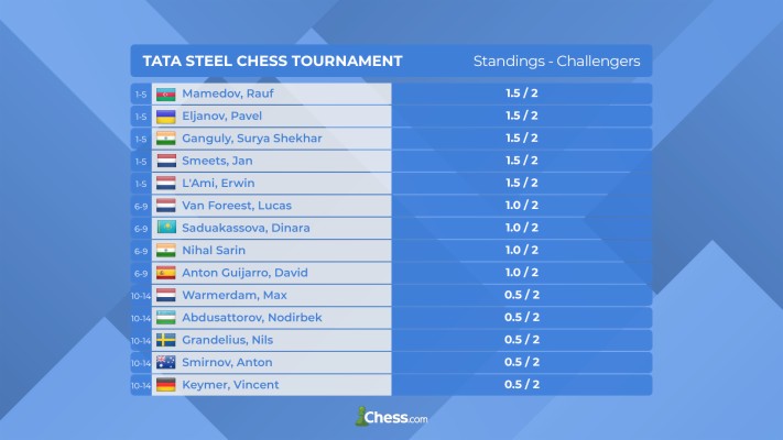 The Standings After 5 Rounds Of The Tata Steel Masters 2020 Chess